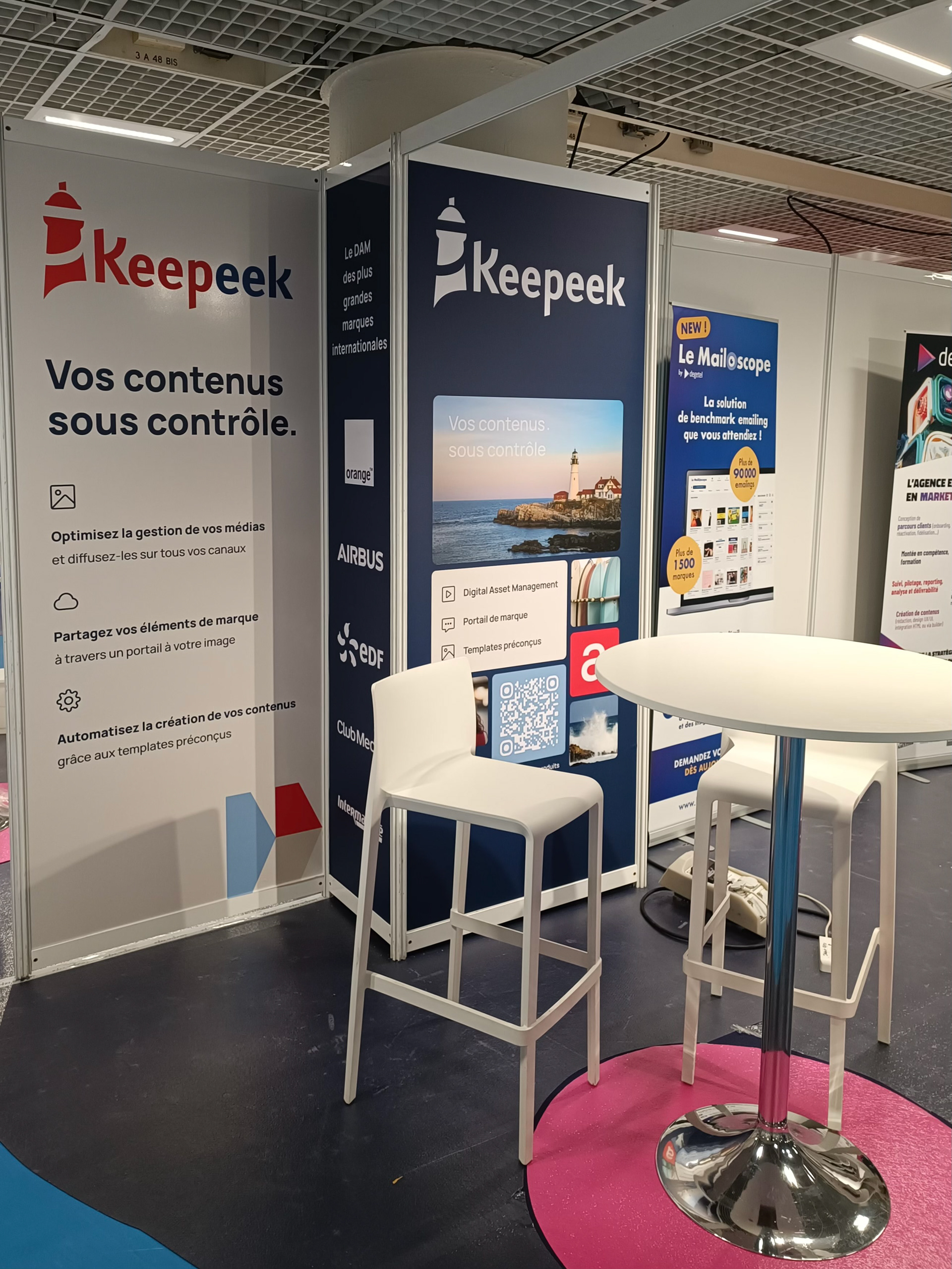 Notre collaboration a commencé par un habillage de stand pour un salon, et s'est ensuite dirigée vers la création de présentations Google Slides