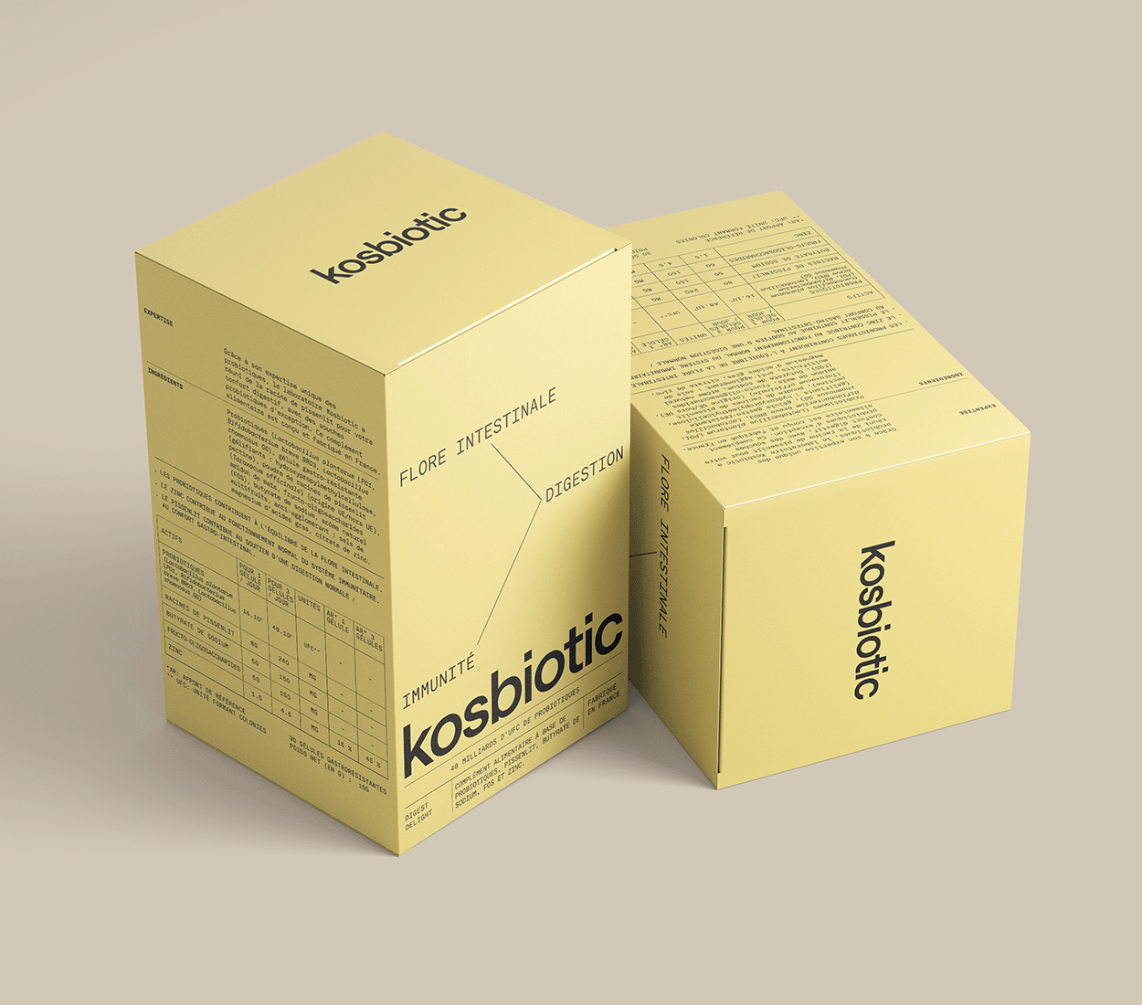 J'ai accompagné Kosbiotic sur la mise à jour de leurs packagings.